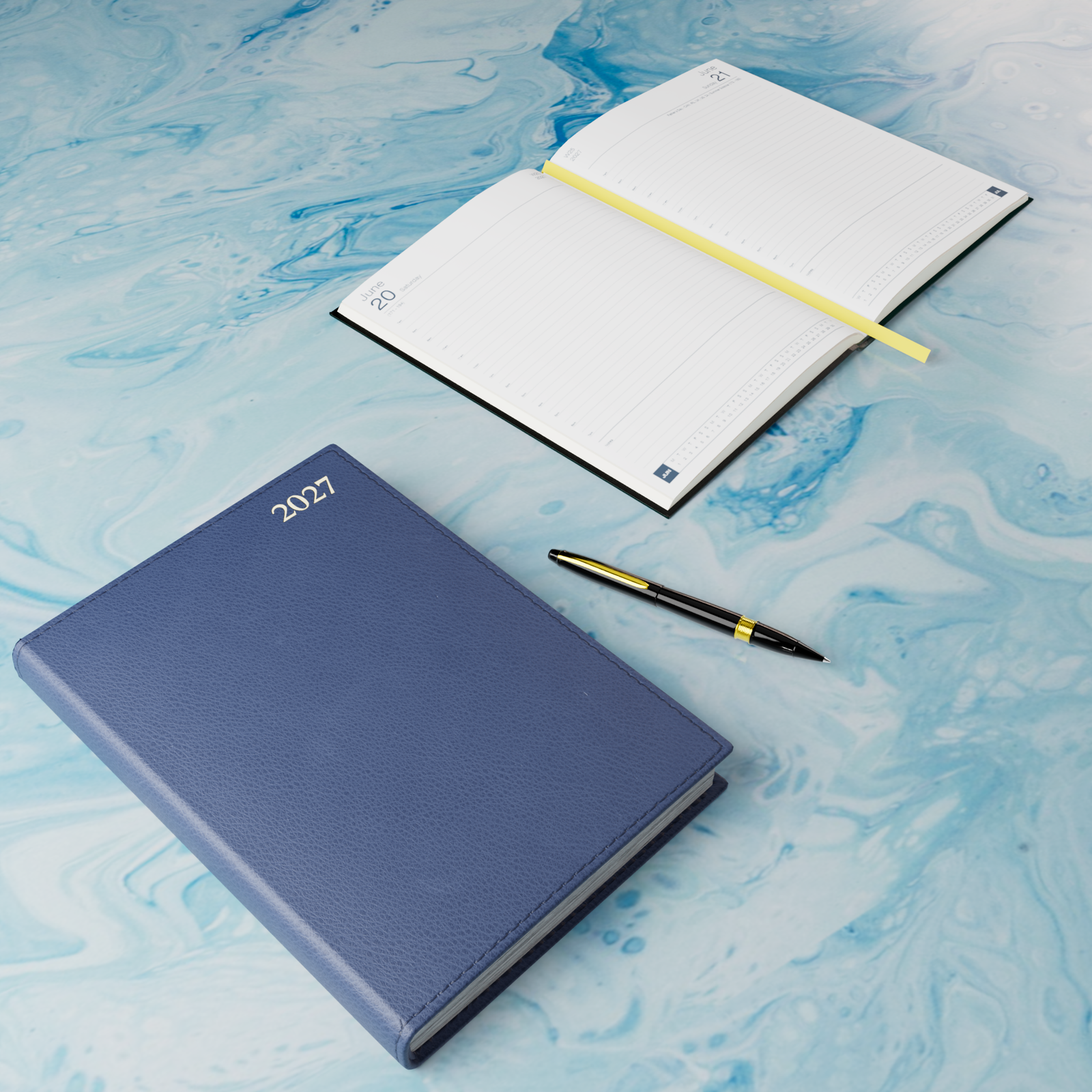Chelsea Leather A4 Desk Diary, Day Per Page, Blue