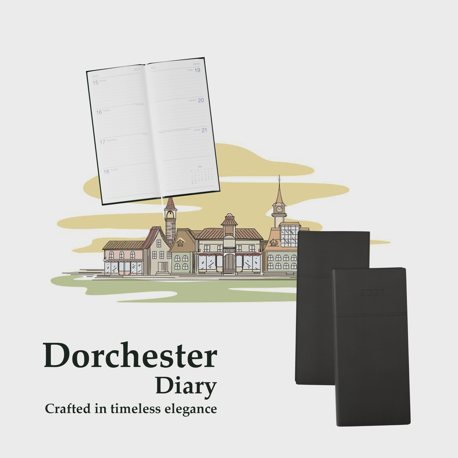 Stay on top of your week with the Dorchester Horizon Pocket Diary – Week to View. Featuring a soft Vegan Leather Horizon design, white paper, and a ribbon marker, this compact diary combines style and practicality for easy weekly planning.
