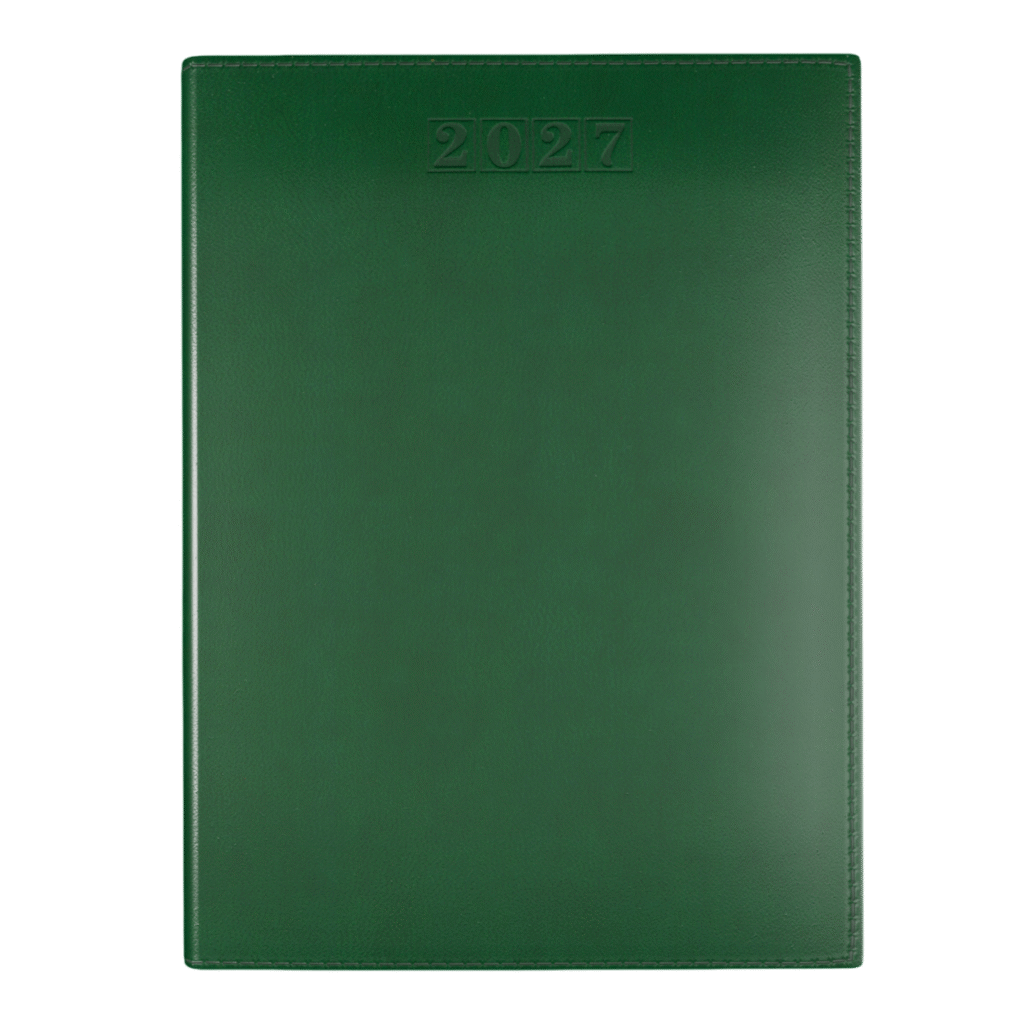 Introducing the Dorchester NewHide Premium A5 Desk Diary ? White FSC recycled aper ? Week to View diary layout, a perfect combination of elegance and functionality for 2026. Crafted from the same durable soft feel vegan leather material. A cover that defines the Dorchester range, this diary has been re-engineered for an even softer, lighter, and more flexible feel. The result is a sleek and luxurious accessory that complements both professional and personal settings.The exterior features coordinated cotton perimeter stitching, giving the diary a refined, polished look that enhances its premium feel. Inside, you?ll find FSC-recycled white paper, making this diary not only beautiful but also an environmentally responsible choice. The Week to View layout provides an efficient overview of your schedule, allowing for easy planning and organization.Designed to be both practical and stylish, this A5 desk diary?s compact size ensures it?s the perfect companion for your desk or on-the-go use. Whether you’re jotting down appointments, managing deadlines, or keeping track of personal tasks, the Dorchester NewHide Premium A5 Desk Diary stands out as a high-quality, eco-conscious solution that blends seamlessly into your daily routine. This diary is more than just a planning tool?it?s an accessory that reflects your taste and values.
