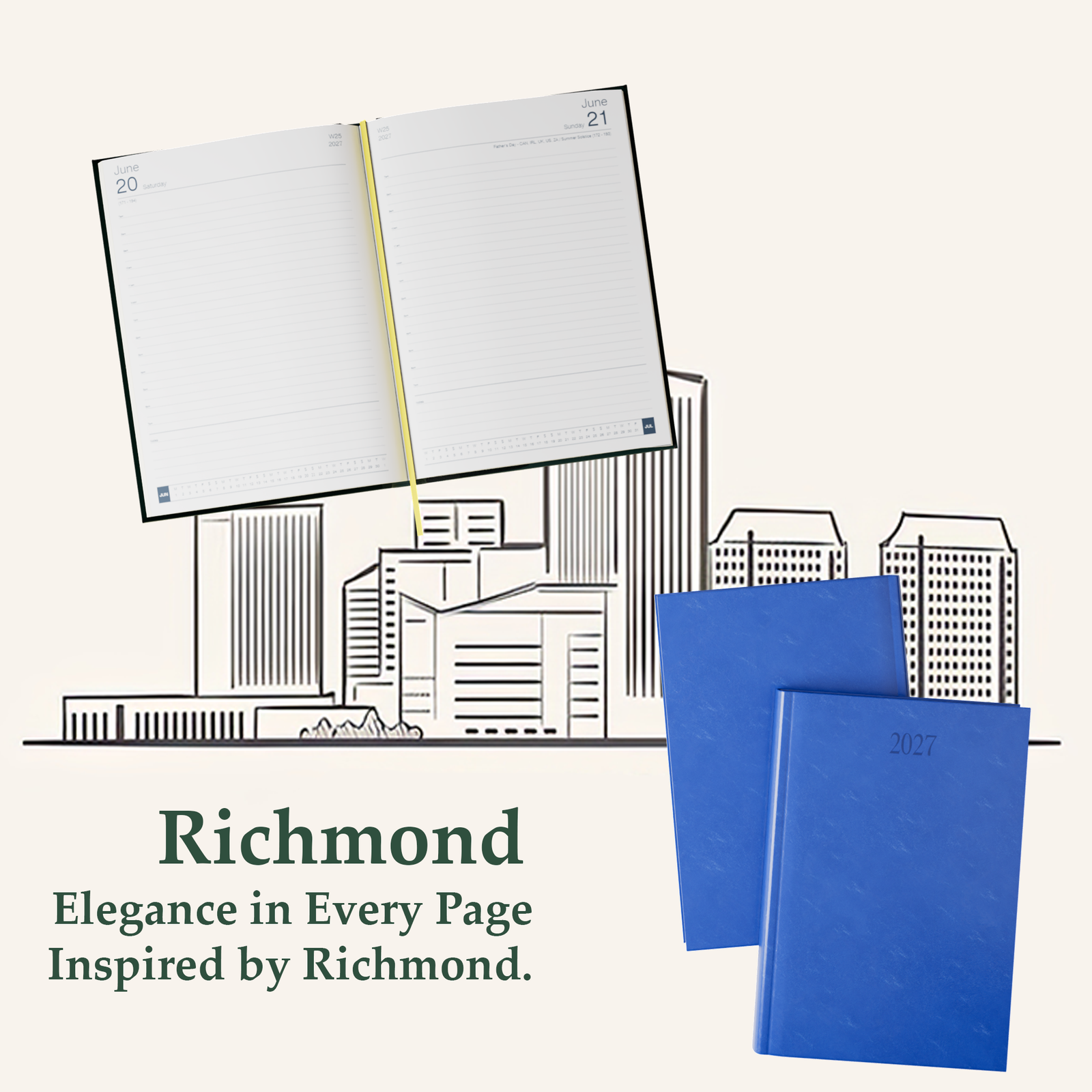 Whether as a personal planner or a premium corporate gift, the Richmond FineGrain A4 Diary merges elegance with functionality, adding a touch of luxury to your everyday planning.