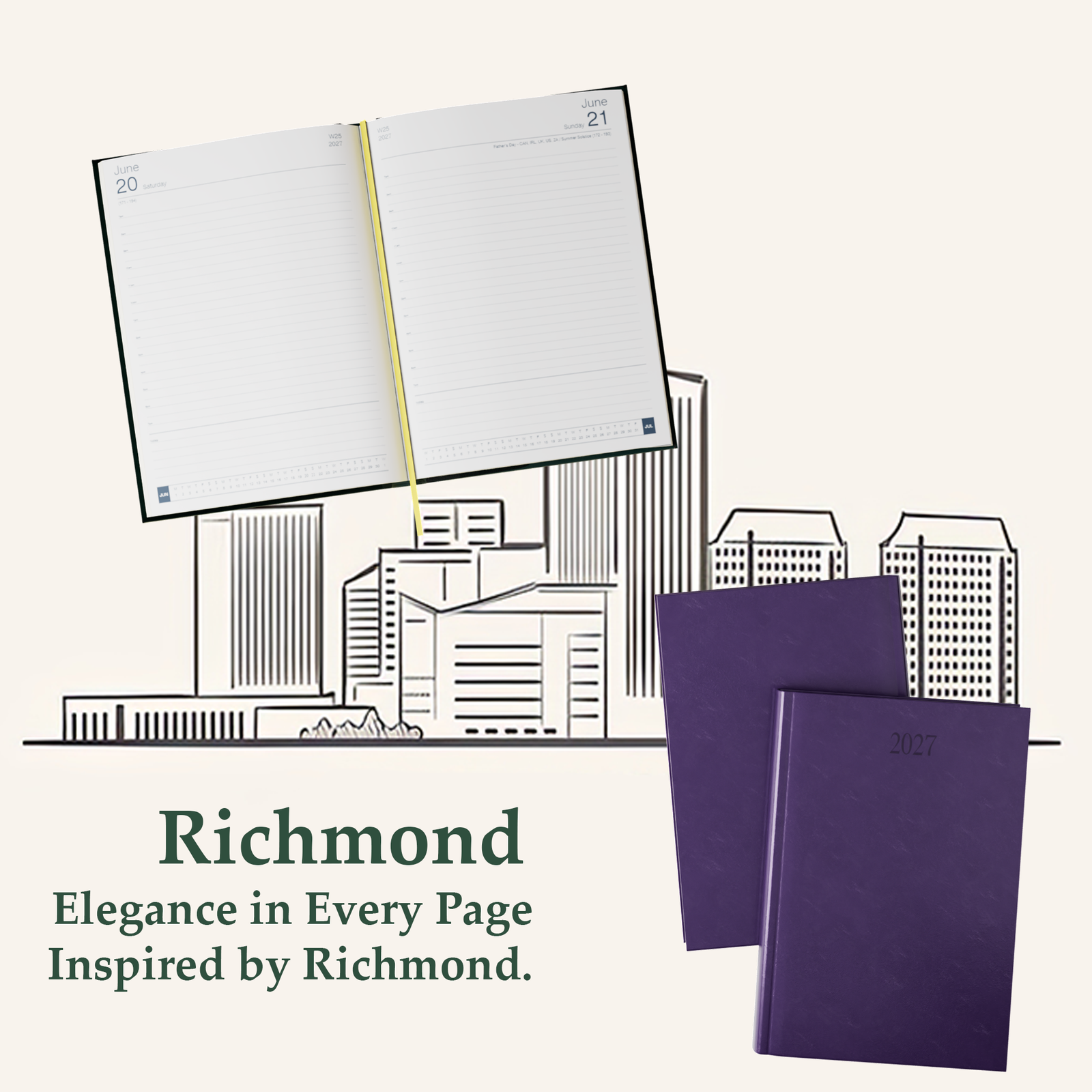 Whether as a personal planner or a premium corporate gift, the Richmond FineGrain A4 Diary merges elegance with functionality, adding a touch of luxury to your everyday planning.