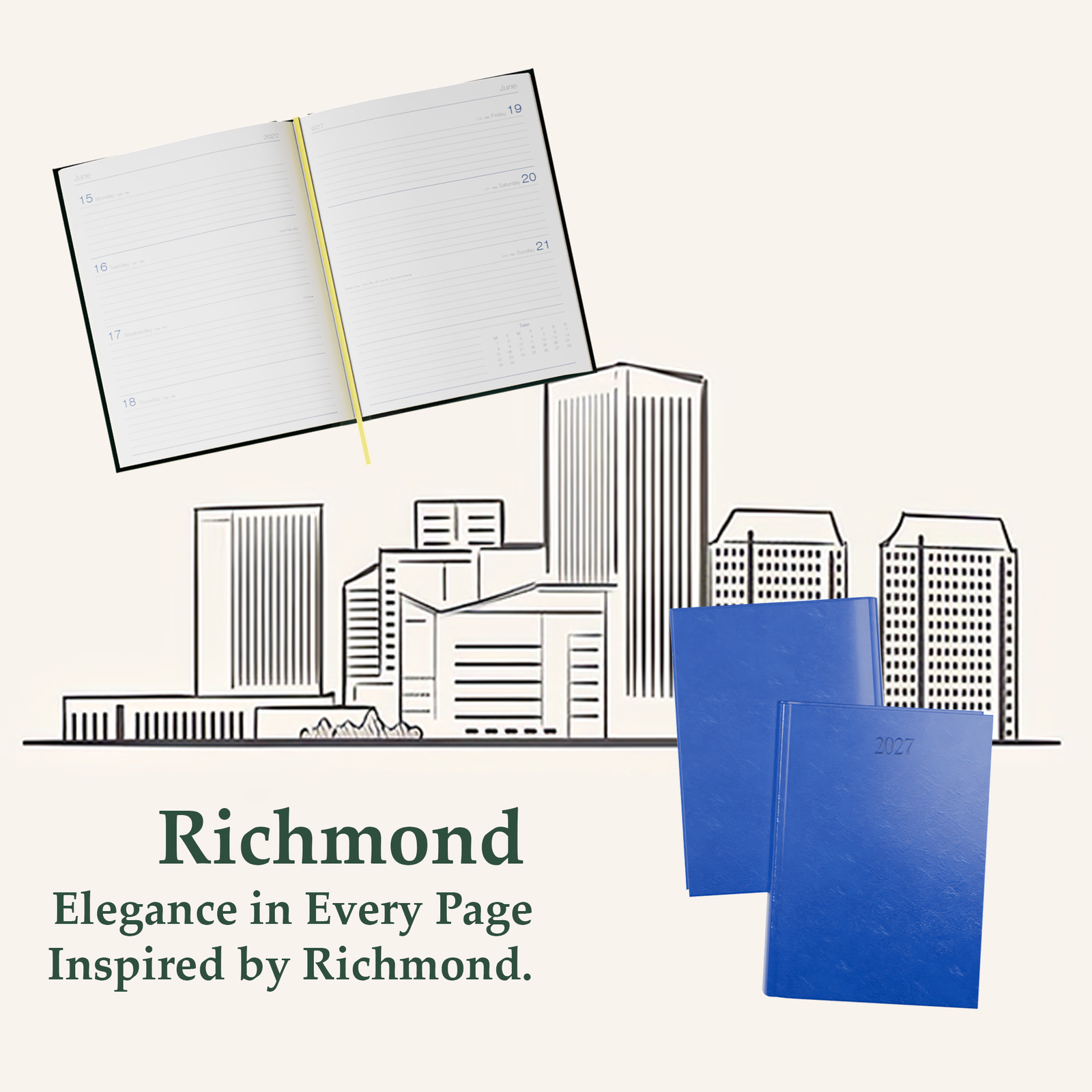 Whether for personal use or corporate gifting, the Richmond Faux Leather A5 Diary brings together premium quality and classic styling, making it a beautiful yet practical choice for organized living.
