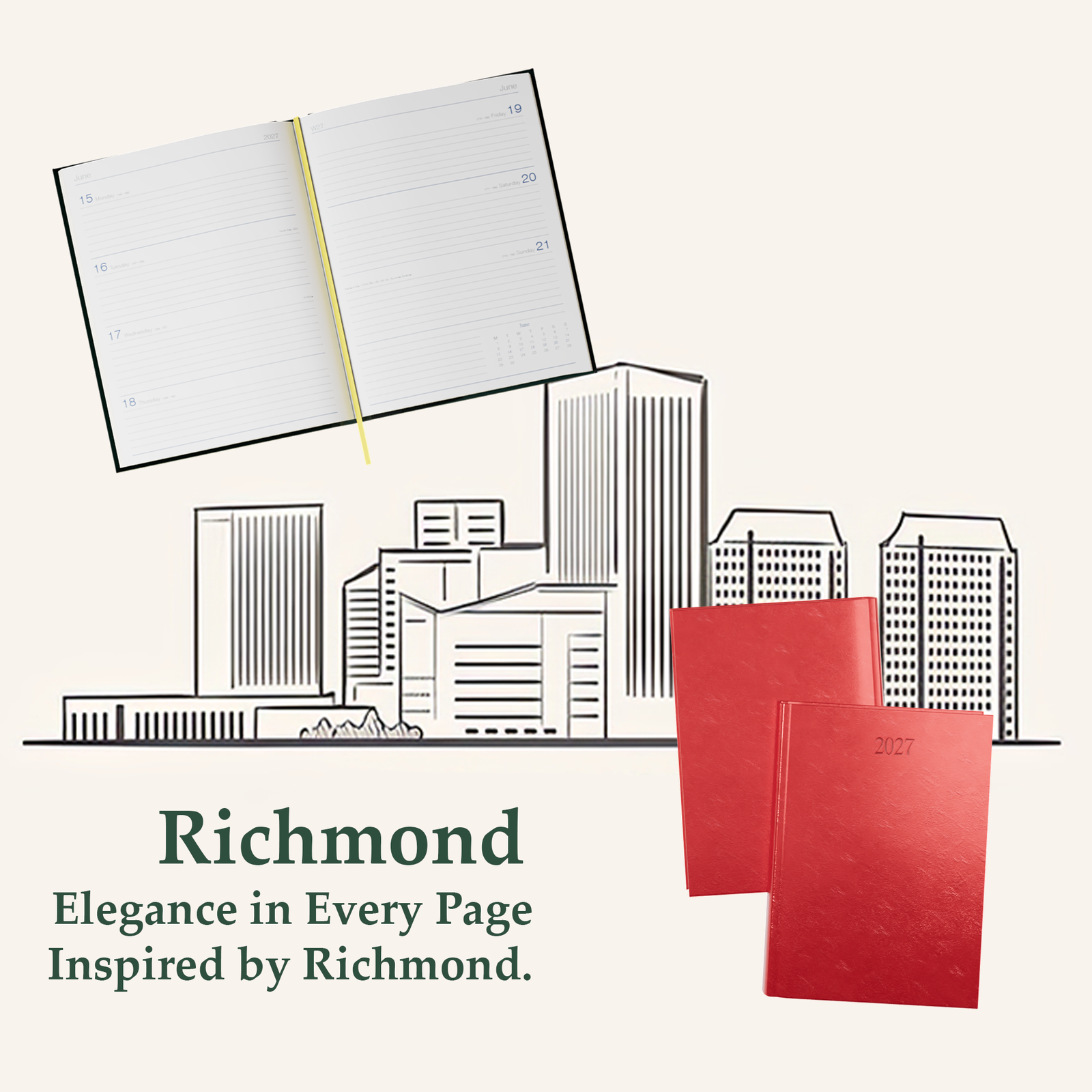 Whether for personal use or corporate gifting, the Richmond Faux Leather A5 Diary brings together premium quality and classic styling, making it a beautiful yet practical choice for organized living.